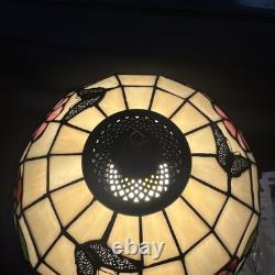 Add a touch of vintage charm to your home with this beautiful Tiffany style table lamp. The lamp features a stunning red and orange stained glass design with a rose flower and butterfly theme. The antique bronze finish adds to the lamp's retro style and the warm white LED lighting creates a cozy atmosphere in any room. With a height of 19 inches and a width of 12 inches, this corded lamp is perfect for your kitchen, bedroom, living room, sunroom, home office/study, or dining room. The lamp shade is included and the on/off switch is easy to use.